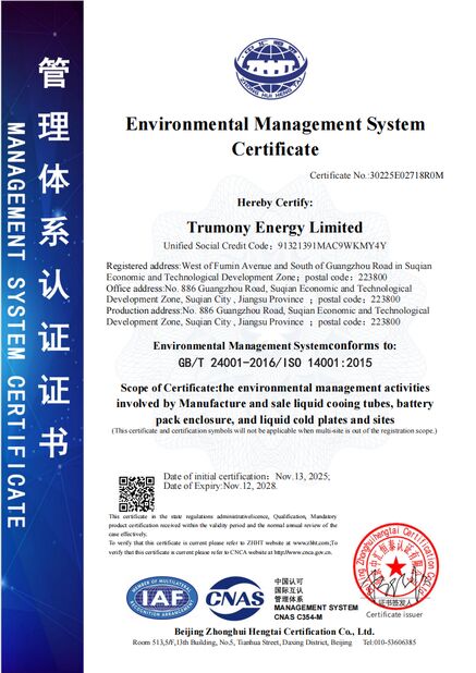 تلتزم Trumony Aluminium Limited بالتمسك بأعلى المعايير الدولية للجودة والموثوقية لمكونات التبريد السائلة لدينا.